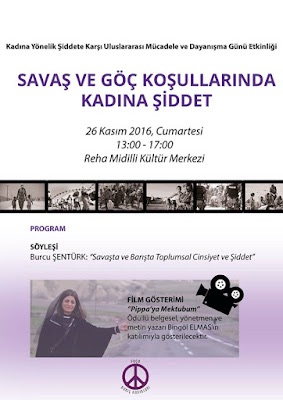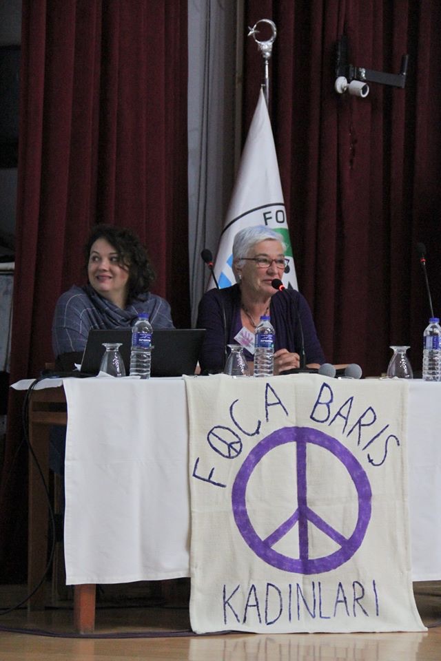 2016 yılı 25 Kasım etkinlikleri kapsamında “Savaş ve Göç Koşullarında Kadına Şiddet” konulu panel düzenledik. Ege Üniversitesi akademisyenlerinden Burcu Şentürk konuğumuz oldu. Panel, Foça Barış Kadınları üyesi feminist, aktivist, mühendis Nergiz Savran Ovacık kolaylaştırıcılığında gerçekleşti.