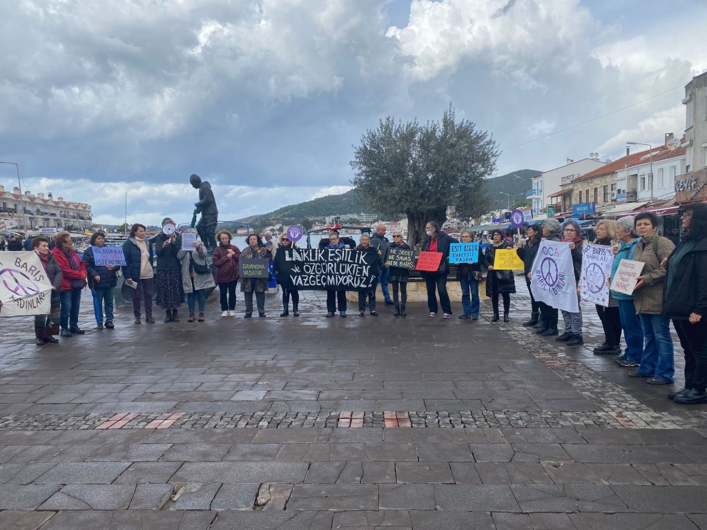 25 Kasım’da her zaman olduğu gibi bu yıl da Kadına Yönelik Şiddete karşı Uluslararası Mücadele ve Dayanışma günü kapsamında Foça Nihat Dirim Demokrasi Meydanı’nda günün önemini vurgulayan basın bildirisi okundu.