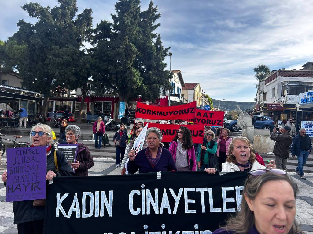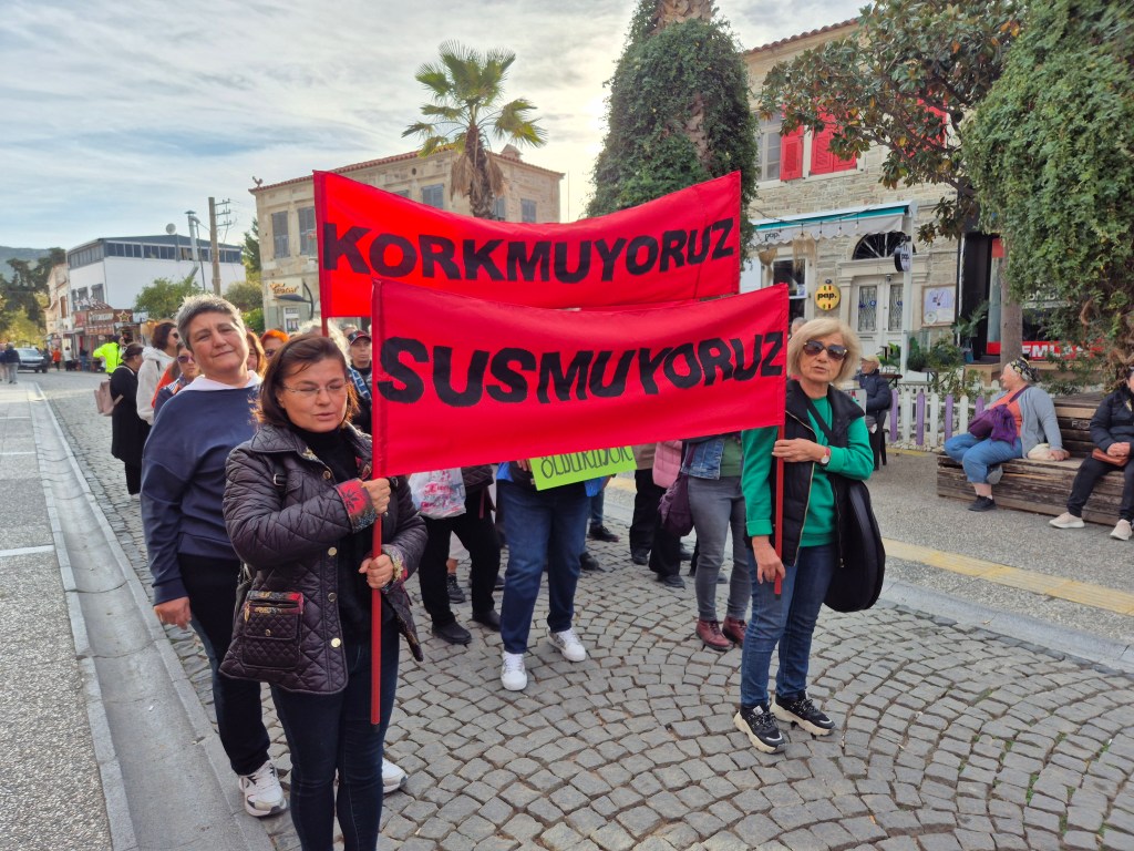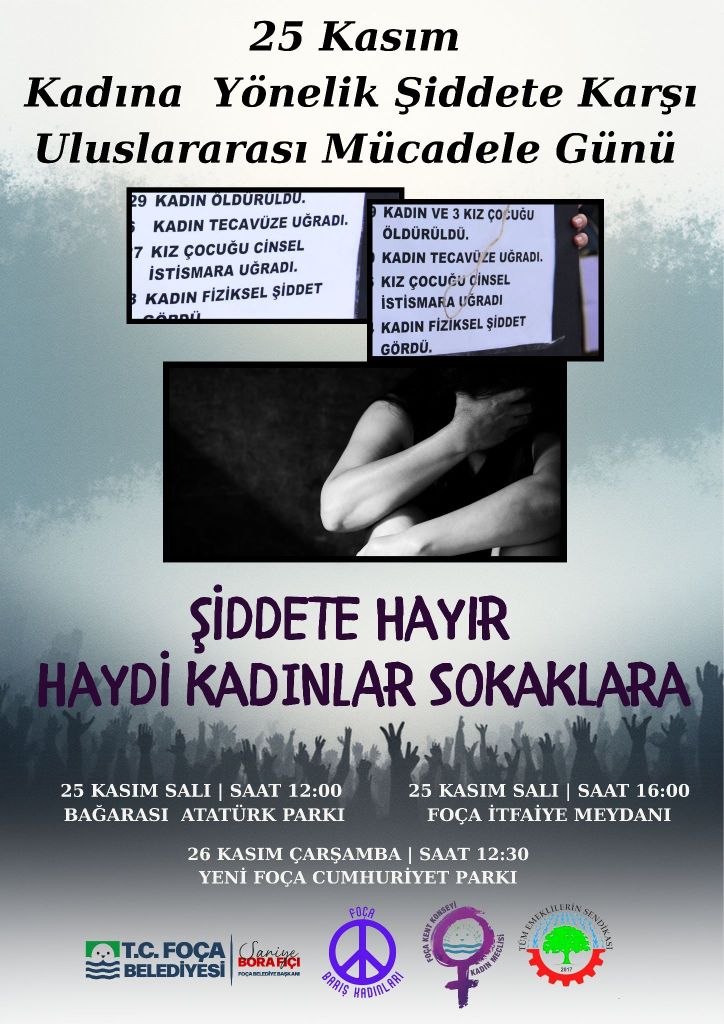 26 Kasım günü ise aynı programı Yeni Foça’da gerçekleştirdik. Öğlen saatlerinde Cumhuriyet Parkı’nda toplanarak, meydana yürüdük ve bildirimizi okuduk.