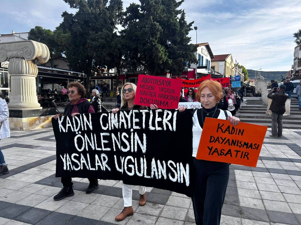 Aynı gün öğleden sonra, Foça Merkez’de İtfaiye Meydanı’nda toplanarak, yine sloganlarımız, pankart ve dövizlerimiz ile Nihat Dirim Demokrasi Meydanı’na yürüyerek, bildirimizi okuduk.